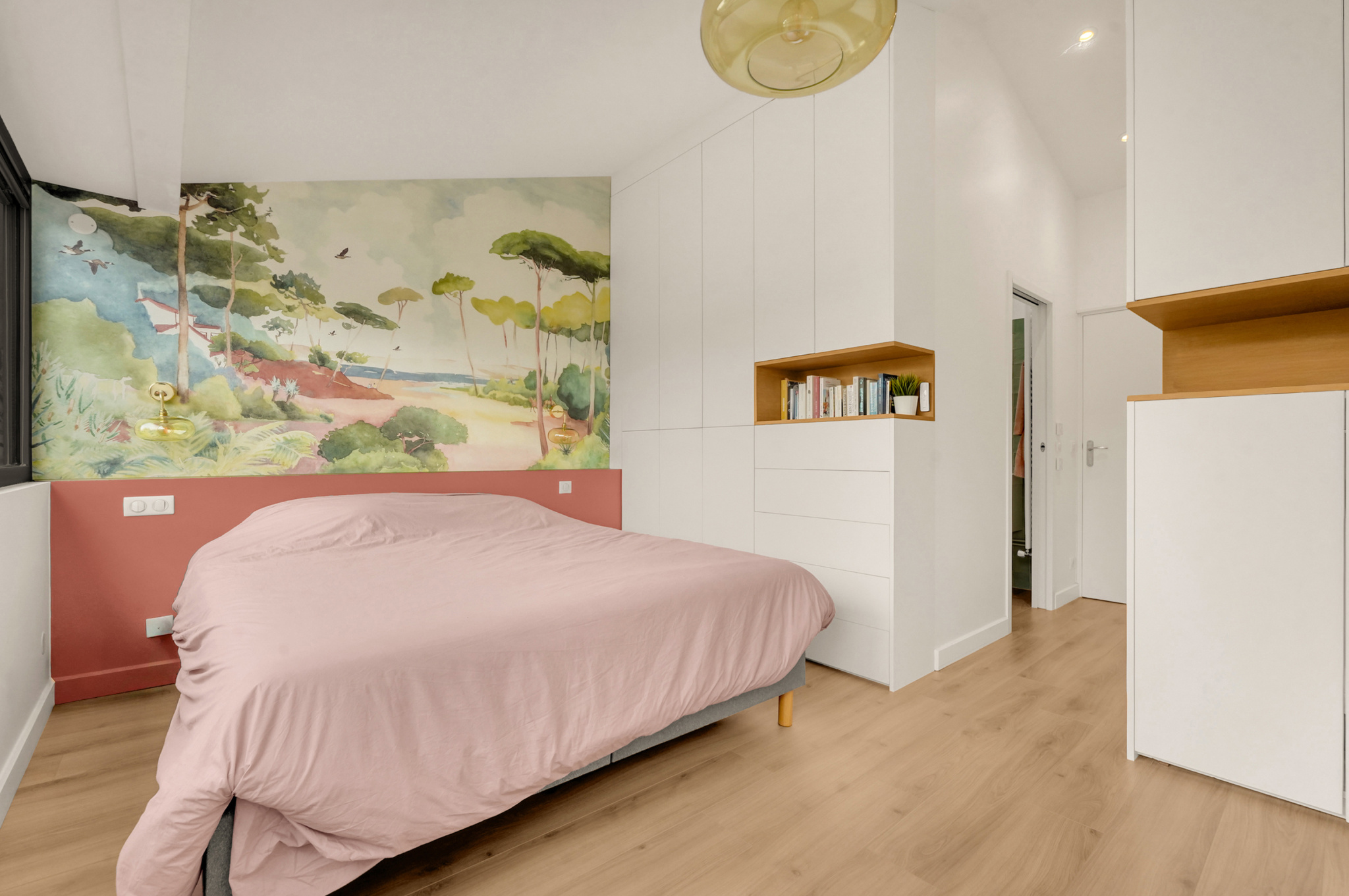 À l'étage, nous trouvons trois chambres spacieuses, dont une suite parentale avec sa salle d'eau et dressing privatif, salle d'eau, bureau/chambre et wc.