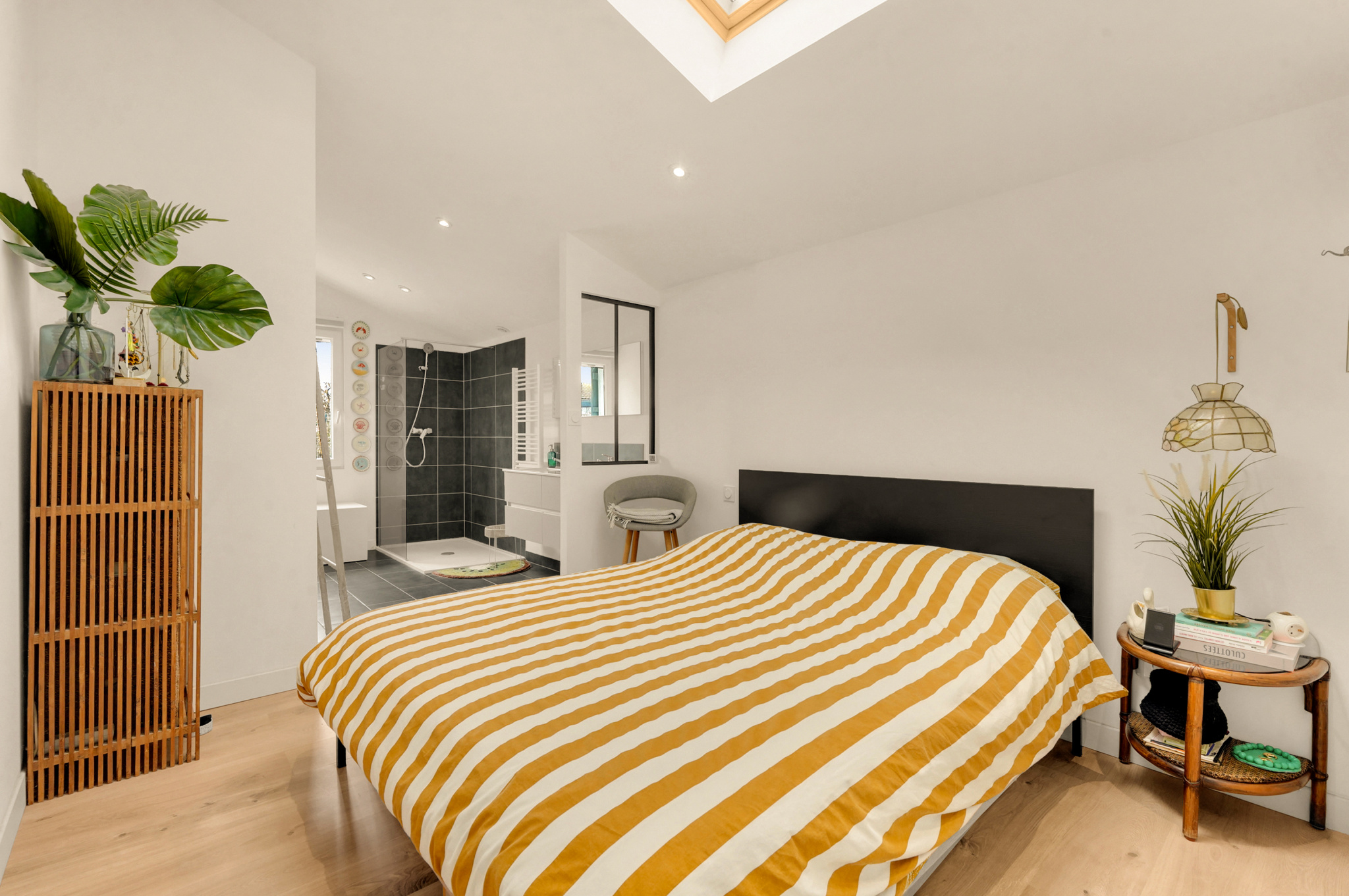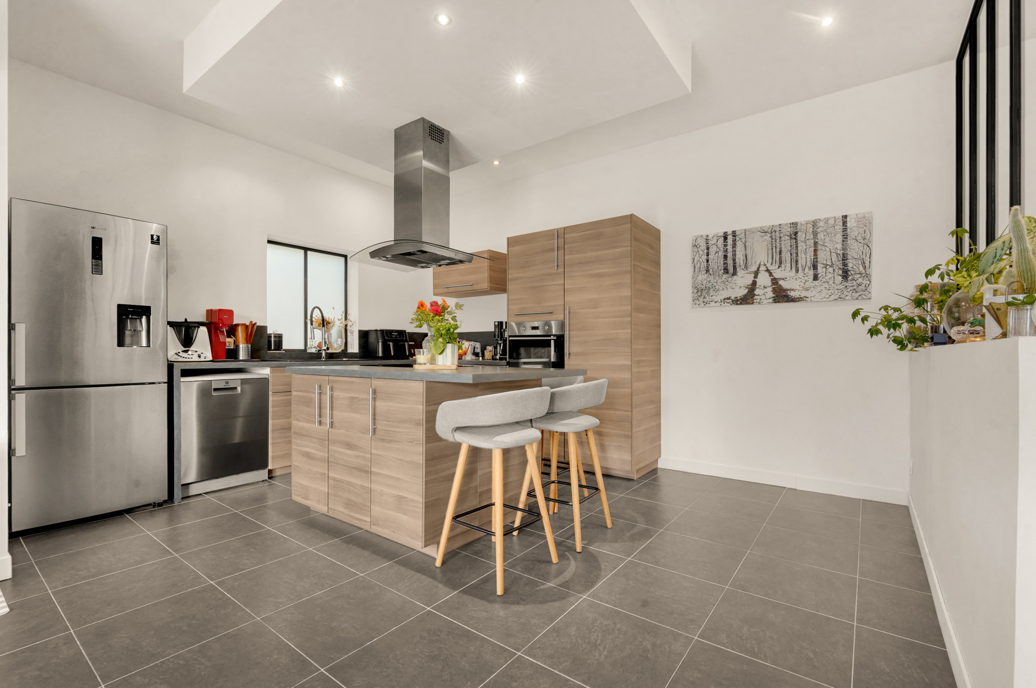 Elle vous propose une belle pièce de vie lumineuse, avec cuisine ouverte et équipée, trois chambres dont une suite parentale, avec salle d'eau privative, salle de bain, deux wc.