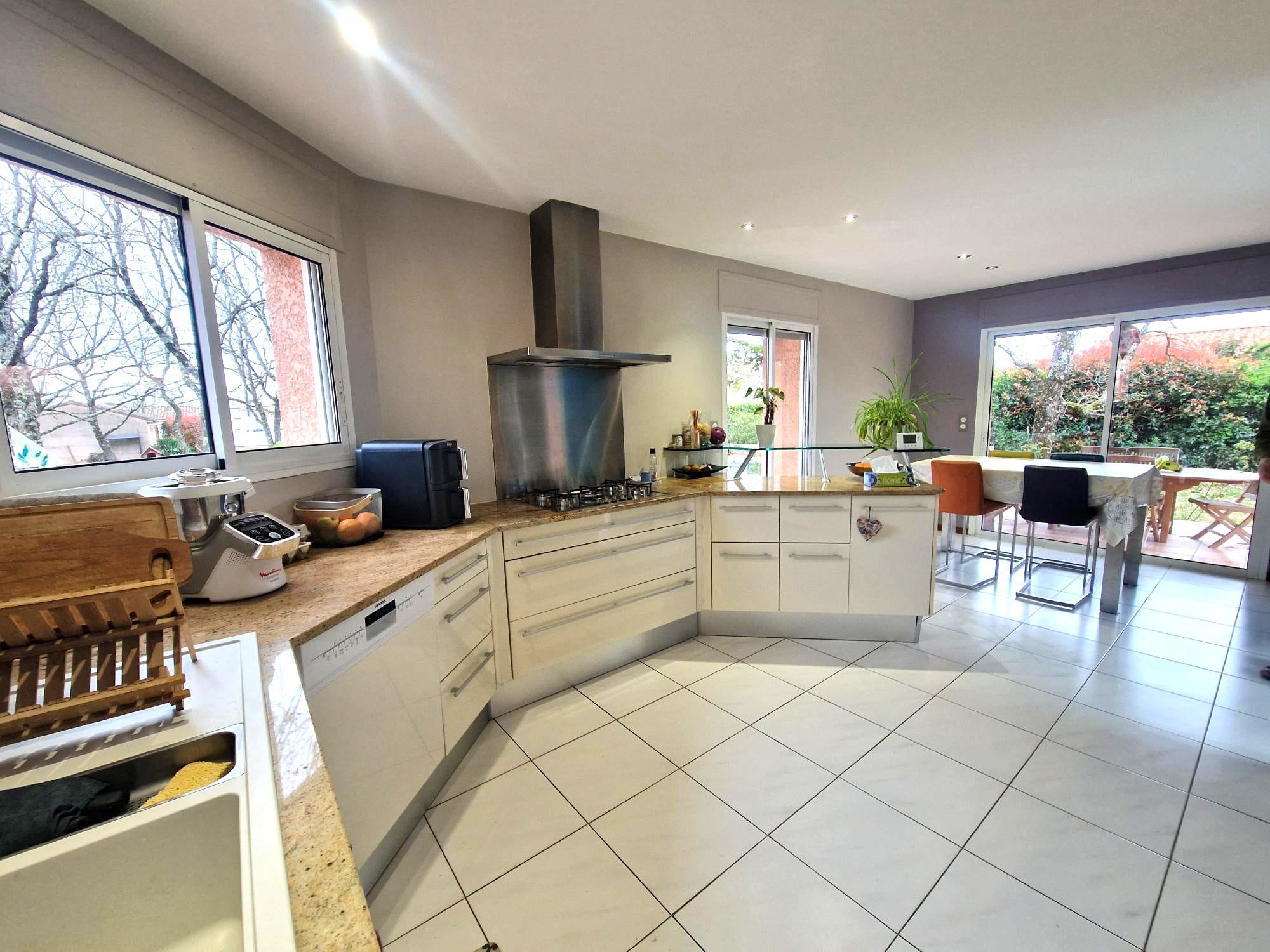 Cette charmante maison T4bis / T5 vous propose une surface de 160m2 sur une parcelle de 935m2 dans le calme et entourée de verdure.