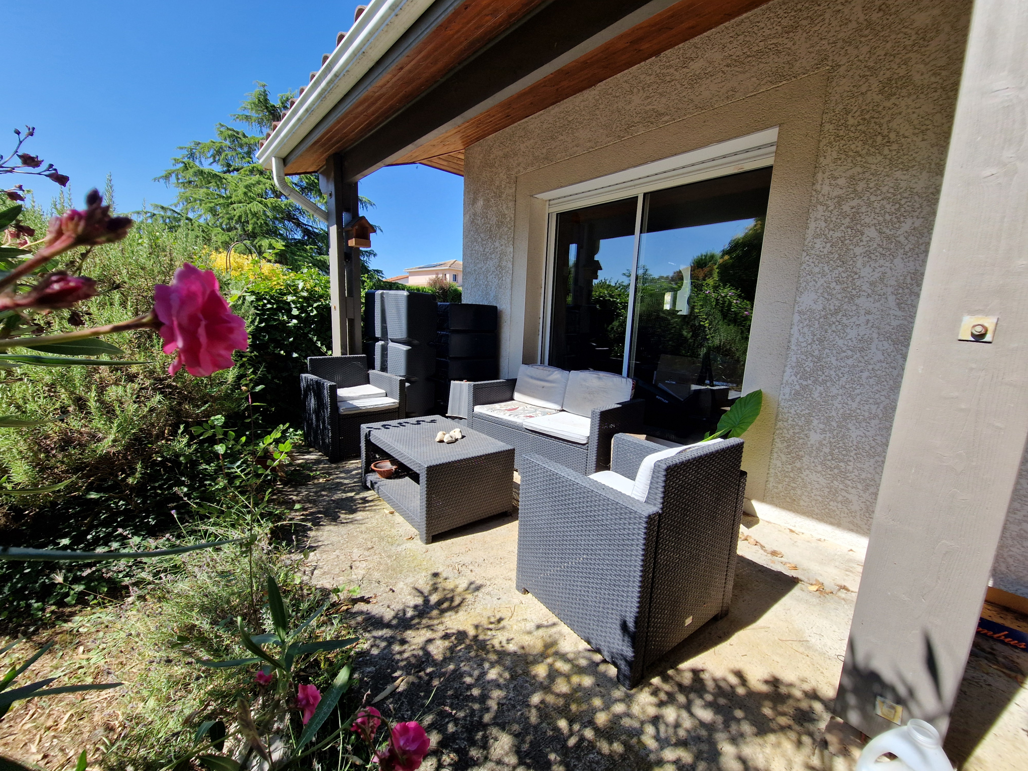 A l'extérieur, le jardin est arboré, deux terrasses, vous disposez d'un espace à vivre devant et à l'arrière également.