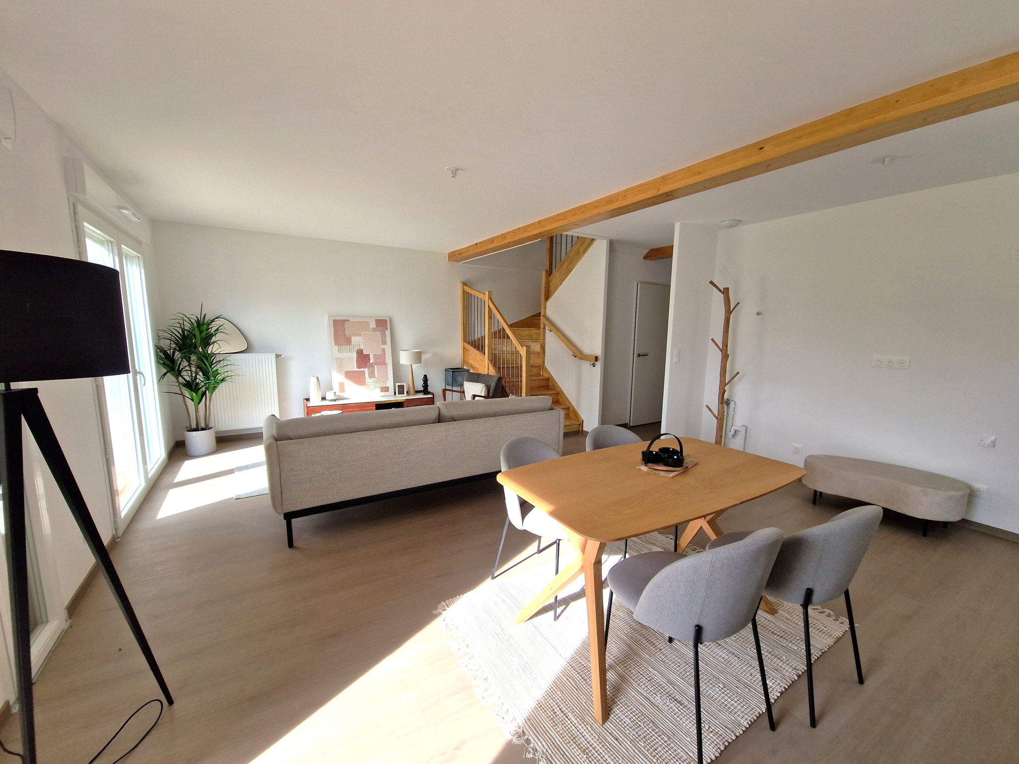 Au rez-de-chaussée, LISE dispose d'un placard à l'entrée, un grand séjour avec cuisine ouverte, un cellier, un WC.